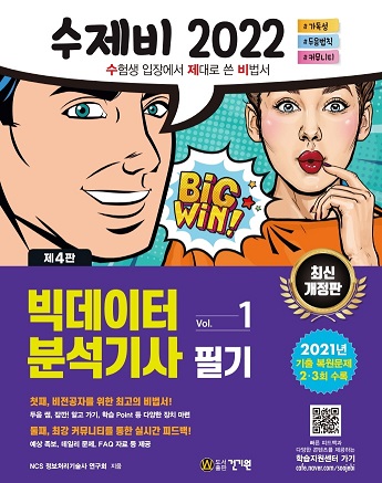 빅데이터 분석기사 필기시험은 생긴지 얼마 안된 시험인데도 시중에 많은 수험서가 있습니다. 빅데이터 분야에 대한 수험생들과 기업의 관심이 그만큼 크다는 것이겠죠. 교재를 고르는 데 고민을 많이 했는데, 출제 경향이 계속 바뀌는 2년차 시험인데 교재들의 퀄리티는 천차만별이었기 때문입니다. 낯선 빅데이터 분야에 대해 쉽고 꼼꼼하게 설명하면서도 출제될 내용을 잘 예측해낼 것 같은 교재를 골라야 했습니다. 저는 장고 끝에 수제비 교재를 골랐습니다.