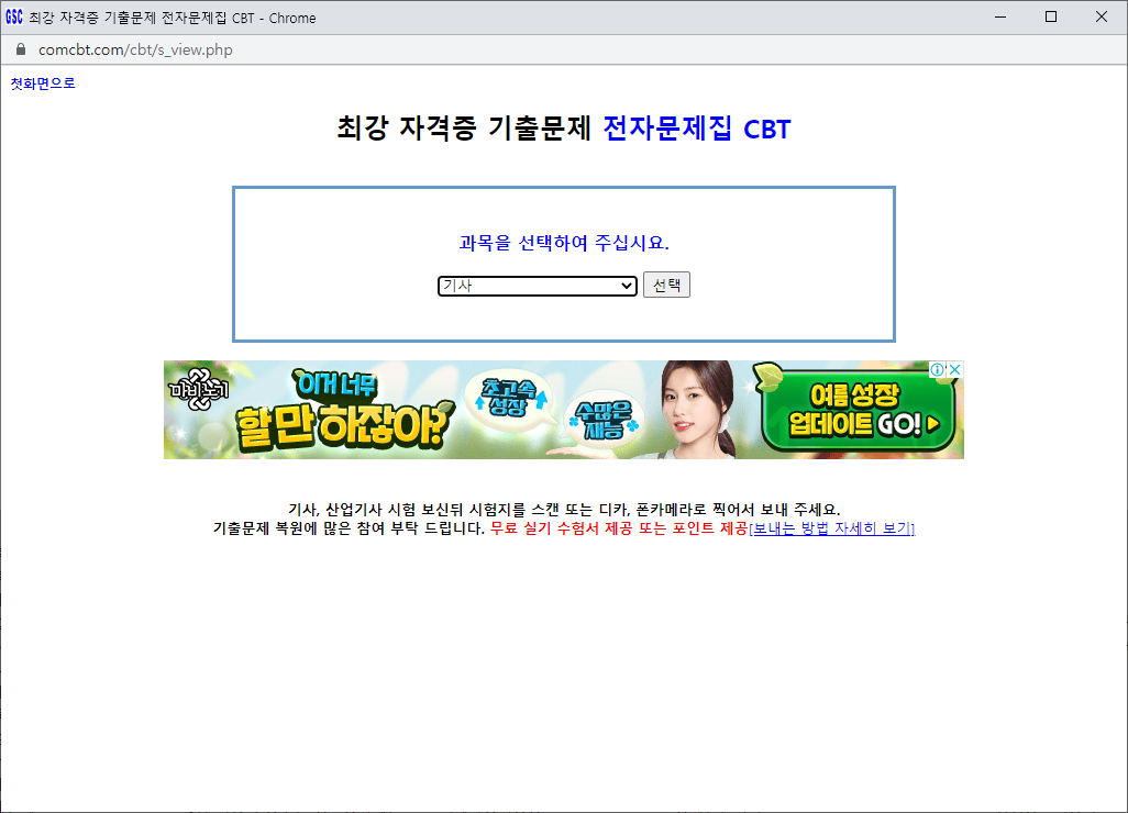 과목 선택창에서 기사를 선택하고 선택 버튼을 클릭합니다.
