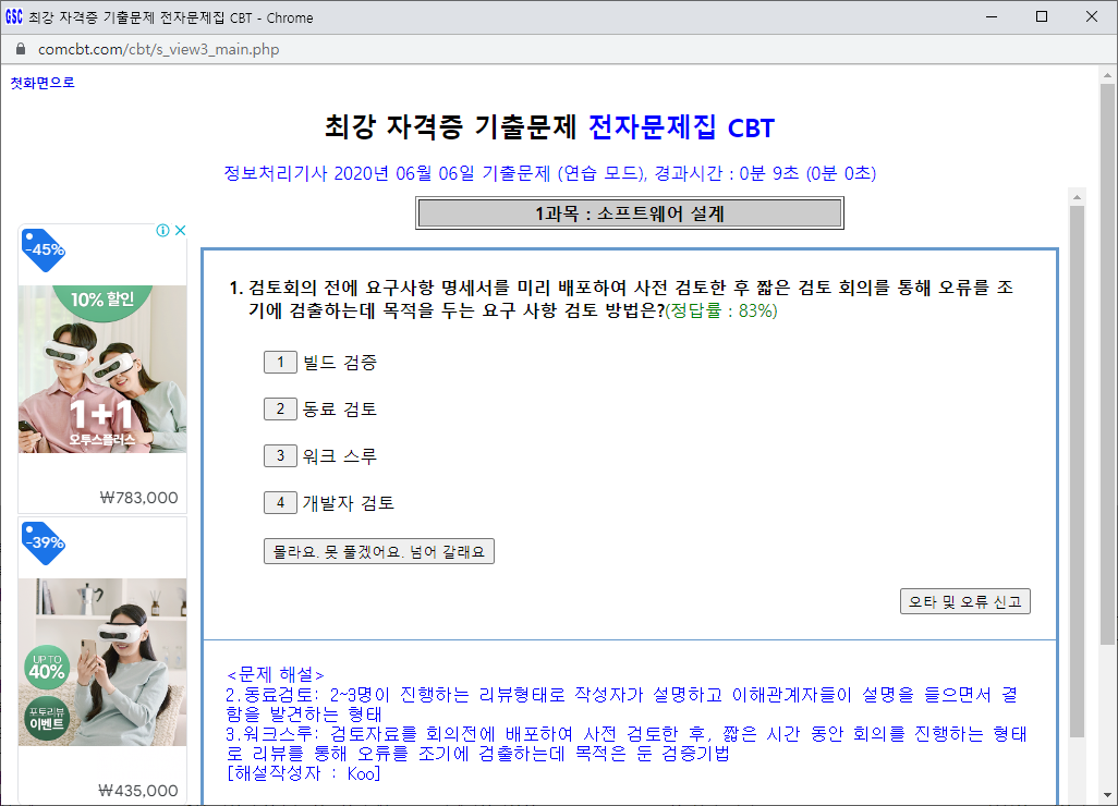 - 연습 모드 : 문제를 풀 때 화면 하단에 문제 해설이 같이 표시됩니다.