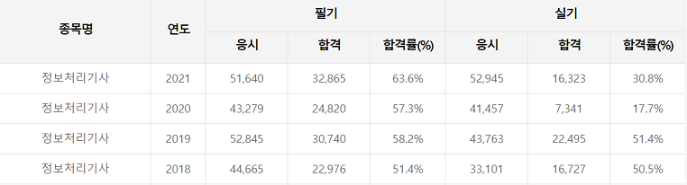 어쨌거나 IT 분야가 요즘 각광받고 있고, 전공자라면 약간의 투자로 취득할 수 있다보니 인기 많은 자격증임은 확실합니다.